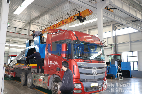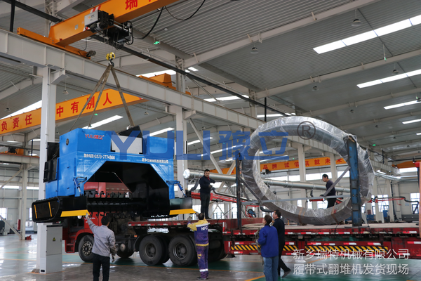瑞特機械發(fā)往廣西梧州的履帶式翻堆機裝車現場